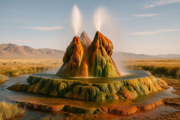 En el corazón del desierto de Nevada, a unos 30 kilómetros al norte de la pequeña ciudad de Gerlach, se esconde uno de los paisajes más sorprendentes y desconocidos de Estados Unidos. Se trata del Fly Geyser, un géiser artificial que, por sus colores y formas, parece sacado de otro planeta. Este rincón poco conocido es el sueño de cualquier amante de la naturaleza, la fotografía y la aventura.
