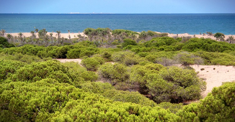 Distinto a todos es este pueblo que tiene un punto decadente gracias a esas casas, en primera línea de ola, carcomidas por el salitre. También hay que pasear por la pinada, una plantación de pinos, palmeras y eucaliptos que sirvieron a principios del siglo XX para frenar las dunas móviles, tan representativas de este pueblo costero en la desembocadura del Segura.