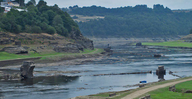 Las aguas del río Miño acompañan al peregrino por esta etapa de 23 kilómetros, lo que la hace sin duda una de las más bonitas y dignas de fotografiar. El final de esta travesía se encuentra en el nuevo pueblo de Portomarín, ya que el antiguo está sumergido bajo las aguas del embalse que, no en vano, debido a la sequía que azota Galicia, actualmente puede verse. Una imagen insólita.