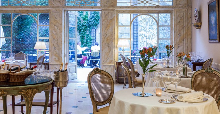 Los amantes del envoltorio clásico ya conocen este rincón único dentro de uno de los hoteles más románticos de la capital. El bar inglés, el salón de té, esos jardines encantadores… Todo cuadra para vivir una velada casi de época. La comida está a la altura, pero qué más da, lo importante es el suspiro que provoca el lugar. Un Madrid diferente.