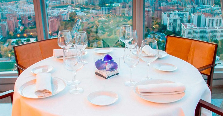 El icono en las alturas que necesitaba Madrid. Todas las metrópolis tienen el suyo. Su rascacielos donde comer y ver el horizonte. Las vistas –a la ciudad y la sierra- las pone este restaurante situado en la planta 33 de Torre Espacio. Es el restaurante más alto de España y sólo por eso ya merece coger el ascensor.